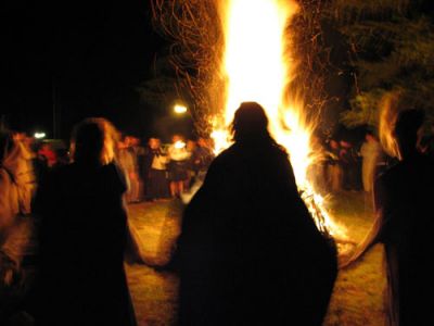 | «Si fanno risalire le origini della festa di Halloween a quella celtica di Samhain celebrata in occasione della fine dell'estate e l'inizio del periodo invernale (Samhain infatti significa " fine estate"). Durante la veglia venivano spenti a casa tutti i focolari per accenderne uno nuovo in segno di rinascita e buon auspicio. I Celti credevano che, nella dimensione circolare- ciclica del tempo, la notte di Samhain fosse in un punto particolare ossia non appartenesse né al vecchio né al nuovo e in quel momento si assottigliasse la linea di confine tra il mondo dei vivi e quello dei morti.» |